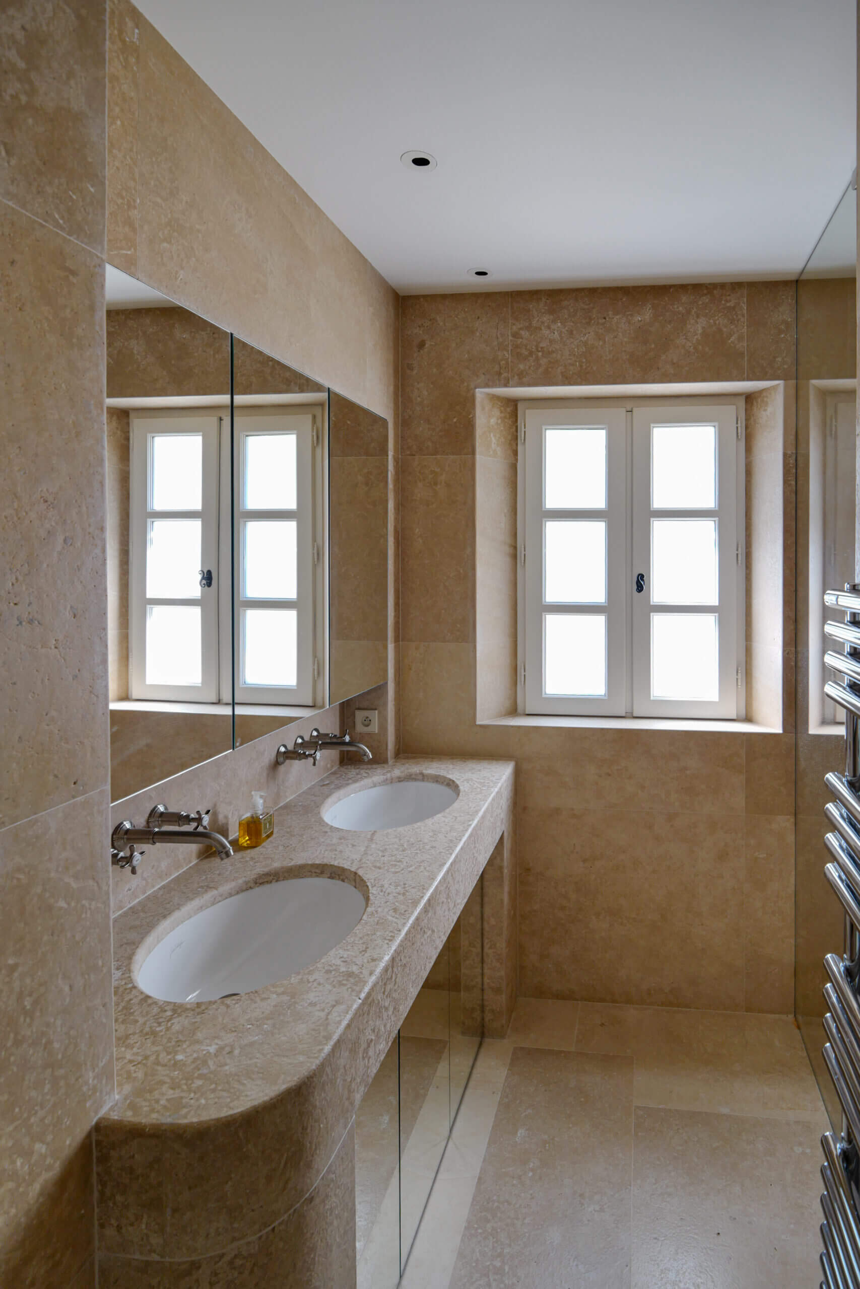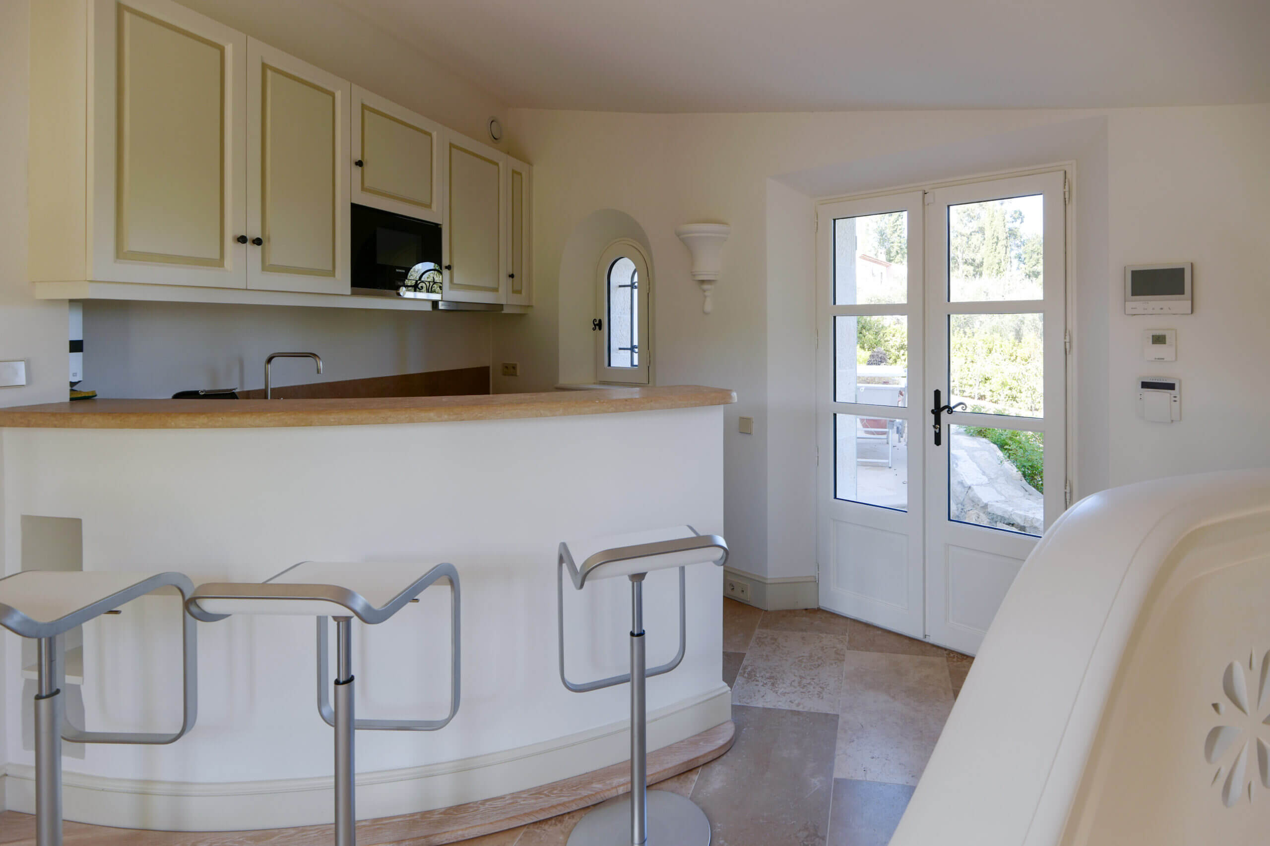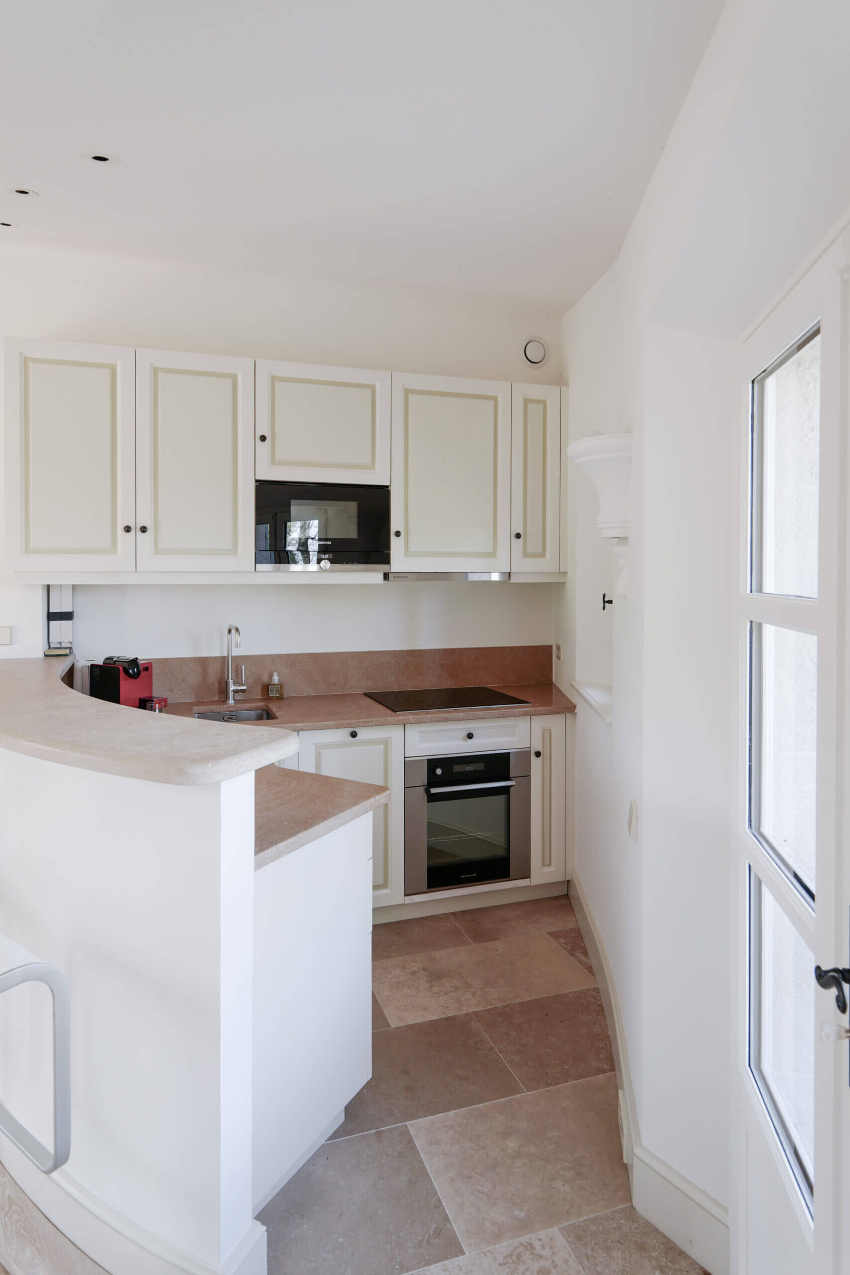 Natural stone from the region is used for the external facade and for the floors and the terraces throughout; the main bathroom and the kitchen worktop and counter is entirely made from natural stone, expertly crafted by local artisans.